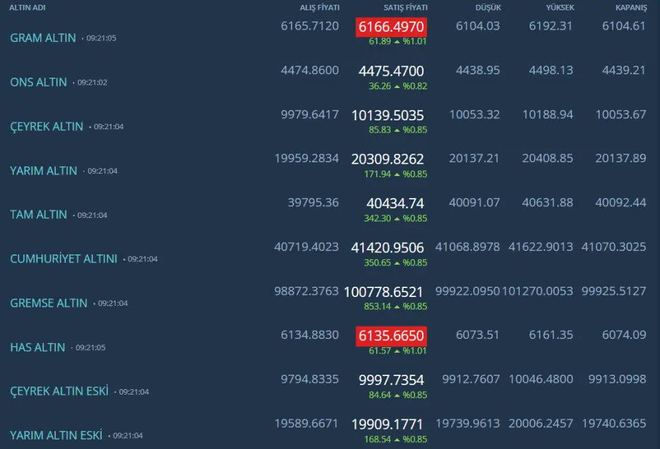 Çeyrek Altın 10.000 TL yi Aştı Kapalıçarşı Gram Çeyrek Fiyatları 23 Aralık