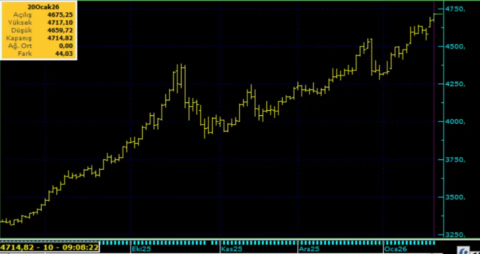 Teknik tarafta Altın fiyatları için 4.550 Usd seviyesi yakın destek noktası olarak takip edilebilir. Üzerinde kalıcılık-tutunma 4.950 Usd seviyelerini gündeme getirebilir. Gümüş ise 93 Usd direnci sonrası 100 Usd’yi yeni psikolojik direnç yapabilir. Bu sabah 4.670 Usd seviyesindeki ons altında 4.680 ve 4.760 Usd seviyeleri gün içi direnç, 4.630 ve 4,580 Usd seviyeleri gün içi destek seviyeleri olarak izlenebilir. Bugün sınırlı pozitif seyir izleyebilir.