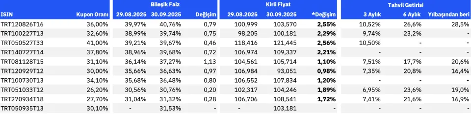 *Kupon ödeme tarihlerinde kirli fiyat teknik olarak düşer; bu hareket, piyasa kaynaklı bir değer kaybı değil, kuponun tahvil fiyatından ayrışmasıdır. Gerçek fiyat değişimini izleyebilmek adına, dönemsel değişim hesaplamasında kupondan arındırılmış adjusted fiyatlar kullanılmıştır.