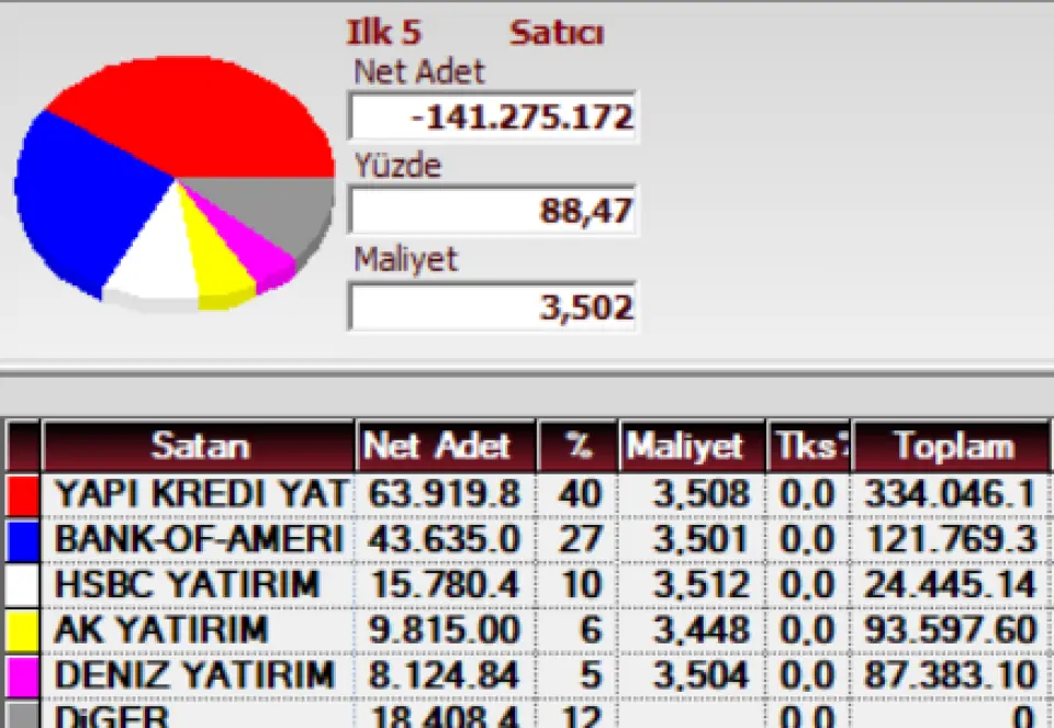 Bugün SASA keyifsiz. Dün 3,75 Lira kapanış yapan hisse bugün 3,46 -3,49 Lira fiyat aralığında işlem görüyor. Hissede saat 11.45 itibariyle en yoğun satıcılar Yapı Kredi Yatırım, Bank of America, HSBC Yatırım, Ak Yatırım ve Deniz Yatırım.