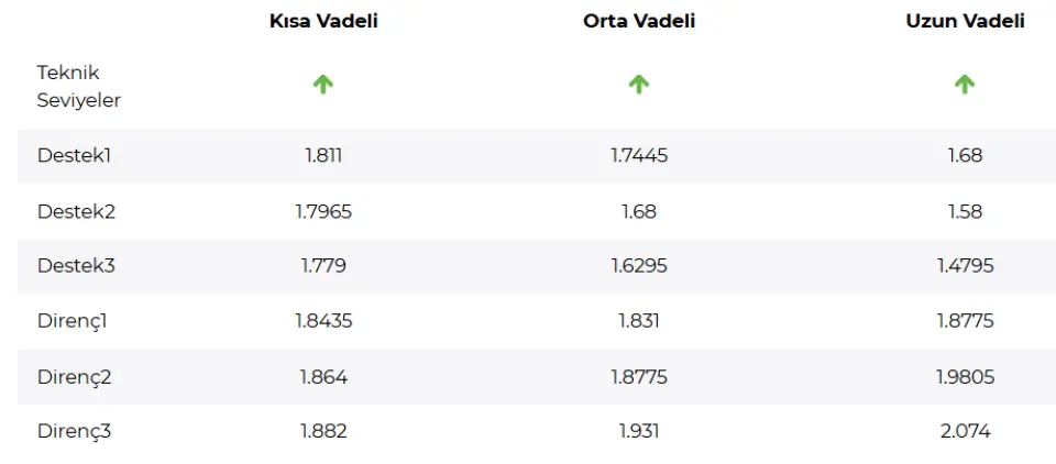Alternatif senaryoda ise referans 1,8110 bölgesi altına doğru bir gerileme yönelimi durumunda ise 1,7965 ve 1,7790 seviyeleri test edilebilir.