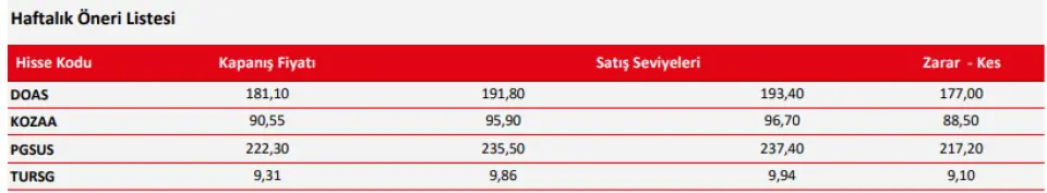 DOAS, KOZAA, PGSUS ve TURSG İçin Haftalık Hedef Fiyat Verildi!