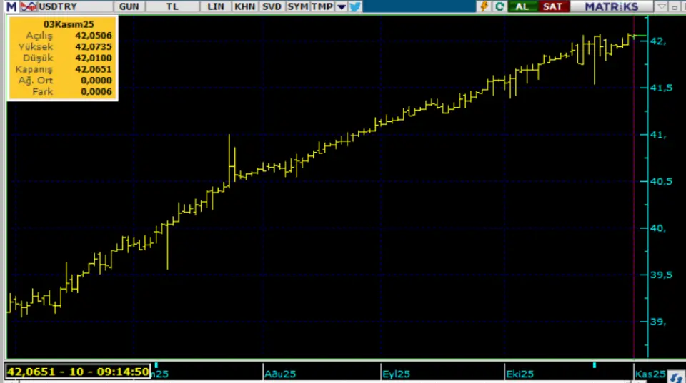 İç tarafta, bugün ekim ayı TÜFE verisi açıklanacak. Beklenti aylık artışın %2,8 olacağı yönünde. Böylece yıllık oran tekrar düşüş hattına girmiş olacak ve yüzde 33,20 seviyesine inecek. Geçen yıl ekim TÜFE artışı %2,88 idi. Aylık artışın bunun üzerinden gelmesi hem beklenti üstü sonuca yol açacak hem de yıllık oran ikinci kez artmış olacak. İTO ekim aylık artışının yüzde 3’ün üzerine oluştuğunu not edelim (%3,3). Kurda ılımlı yukarı eğilimi koruyor. Bu sabah 42,07 civarında işlem görüyor. Aşağıda 41,70 ve 41,50; yukarıda 42,30 ve 42,50 öne çıkan teknik seviyeler.