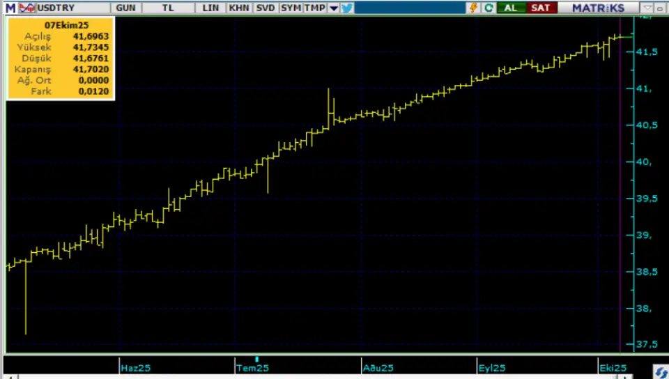 İç tarafta, eylül ayı enflasyonu beklentilerin belirgin üzerinde geldi. Aylık artış yüzde 3,23 olurken, yıllık enflasyon mayıs 2024’den gelen düşüş serisini sonlandırdı. Enflasyonun ana eğiliminde aşağı yön oldukça yavaşlamış durumda. Bu durum TCMB Ekim ayında sınırlı faiz indirimine gideceği beklentisinin artmasına neden oluyor. Mevsim etkisinden arındırılmış tüketici fiyatları Eylül'de yükselişini sürdürerek aylık bazda yüzde 2,71 arttı. Önceki ay artış yüzde 2,49 olmuştu. Kurda ılımlı yukarı eğilimi koruyor. Bu sabah 41,70 civarında işlem görüyor. Aşağıda 41,00 ve 40,50; yukarıda 42,00 ve 42,50 öne çıkan teknik seviyeler.