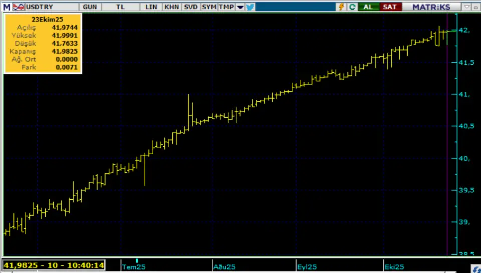 Trump-Putin, Trup-Xi görüşmelerinin umutları ile piyasalar iyimser fiyatlama yaparak risk iştahını korumaya devam ediyordu. Risk iştahındaki artış ise dolar talebinin azalmasına yol açıyordu. Ancak son haber akışı Putin ile yapılması beklenen görüşmenin olmayacağını işaret ediyor. Bu sebeple Avrupa ve ABD Rusya’ya karşı yeni yaptırım uygulama hazırlanıyor. Diğer yandan kıymetli madenlerdeki düzeltme de nakde dönüş, dolara dönüş sağlıyor. Son olarak ABD bütçe açığındaki azalma, FED faiz indirimine dair iyimserliğin biraz dağılmış ve gri alana girmiş olması Dolar talebi için diğer sebeplere dönüşmüş durumda. Yukarıdaki ifade ettiğimiz unsurlar doların son günlerde talep görmeyi sürdürmesini sağlıyor. Yarın ABD TÜFE verisi açıklanacak. Verinin sonucu piyasaya ve FED’e yeni bir sinyal verecek. Piyasa fiyatlaması değişebilir, doların değeri de değişebilir. Dolar Endeksi (DXY) 96-97 bandında tutunmayı başararak 101 seviyesi direnç noktası olarak takip edilebilir. 97 seviyesinin kırılması dolar aleyhine yeni bir sürecin başlamasına neden olabilir. Endeks destek seviyesini test ediyor.