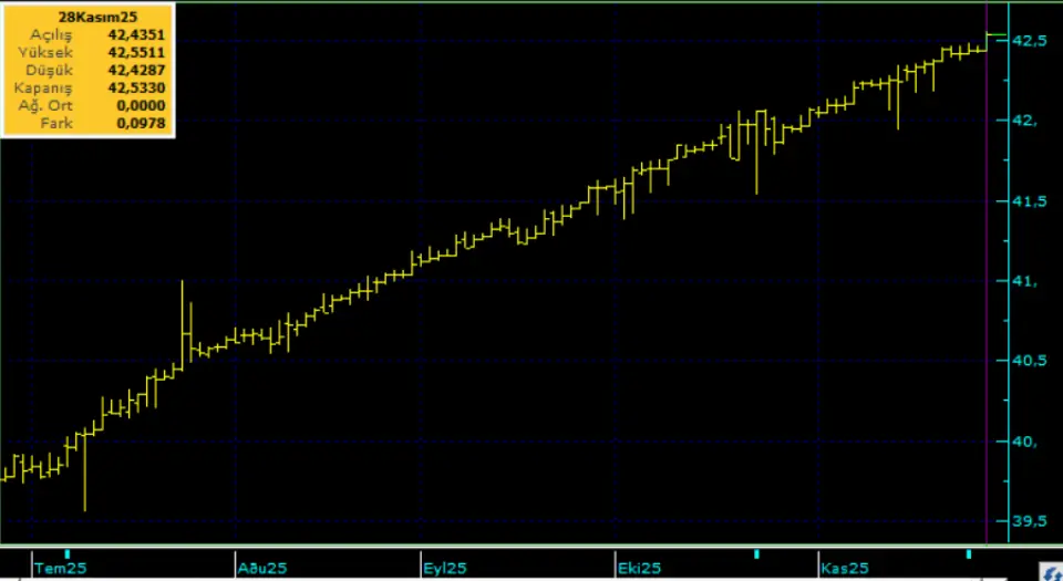 İç tarafta, Ekim ayı enflasyonunun beklentilerin altında kaldığına işaret eden TCMB Başkanı Karahan, kasım ayı özelinde de öncü verilerin benzer şekilde olduğunu belirtmesi lokal piyasada risk iştahının desteklenmesine neden oluyor. Türkiye Cumhuriyet Merkez Bankası'nın (TCMB) brüt rezervi 21 Kasım haftasında 180,6 milyar dolara geriledi. Kurda ılımlı yukarı eğilimi koruyor. Bu sabah 42,48 civarında işlem görüyor. Aşağıda 42,00 ve 41,70; yukarıda 42,50 ve 42,70 öne çıkan teknik seviyeler.