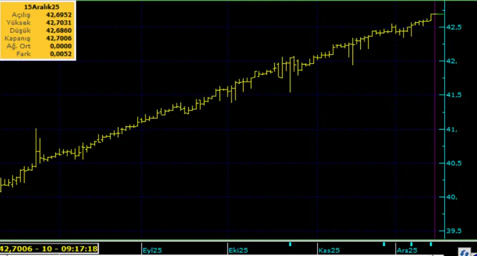 Yıl sonu takvim etkisi nedeniyle yabancı yatırımcıların yeni yılın başında yerel varlıklara ilgilerinin artması bekleniyor. Bu döviz girişi anlamına geldiği için TL lehine etki yaratabilir. Kurda ılımlı yukarı eğilimi koruyor. Bu sabah 42,68 civarında işlem görüyor. Aşağıda 42,30 ve 42,00; yukarıda 42,70 ve 43,00 öne çıkan teknik seviyeler.