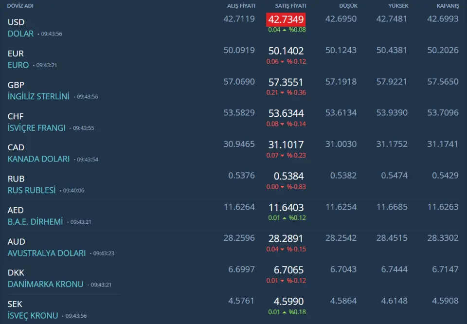ekside kapatarak zayıf görünümünü sürdürdü. Bugün yurt içerisinde ve ABD'de veri akışı sakin. Dolar/TL, bu sabah saat 08:00 itibariyle 42,71