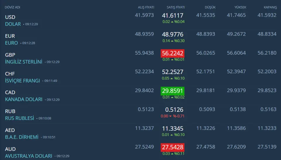 Kapalıçarşı döviz fiyatları:
