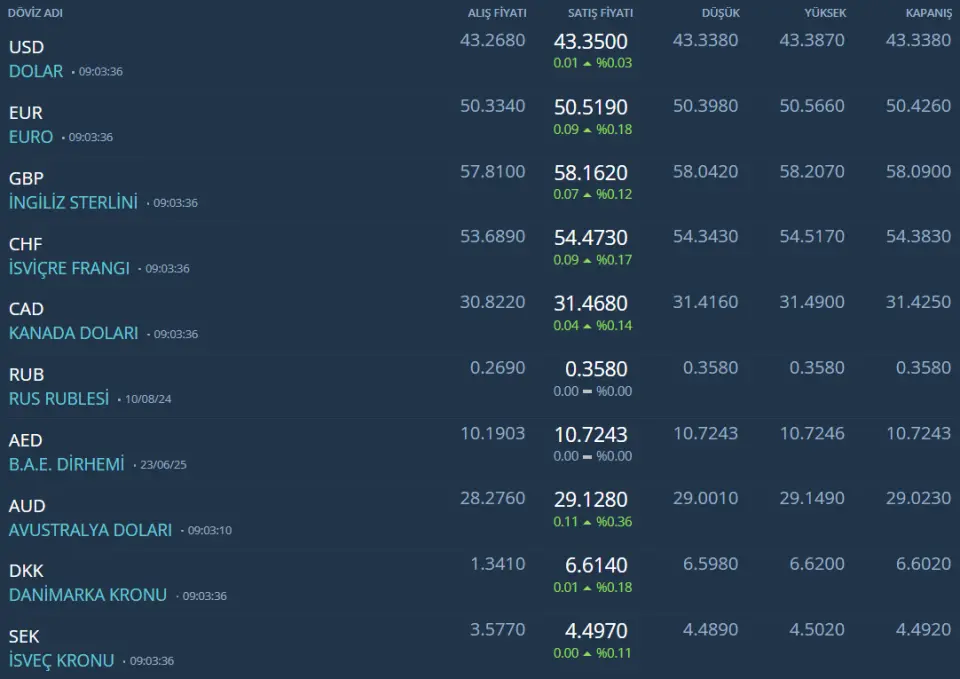 Kurda ılımlı yukarı eğilimi koruyor. Bu sabah 43,27 civarında işlem görüyor. Aşağıda 42,70 ve 42,50; yukarıda 43,30 ve 43,50 öne çıkan teknik seviyeler.