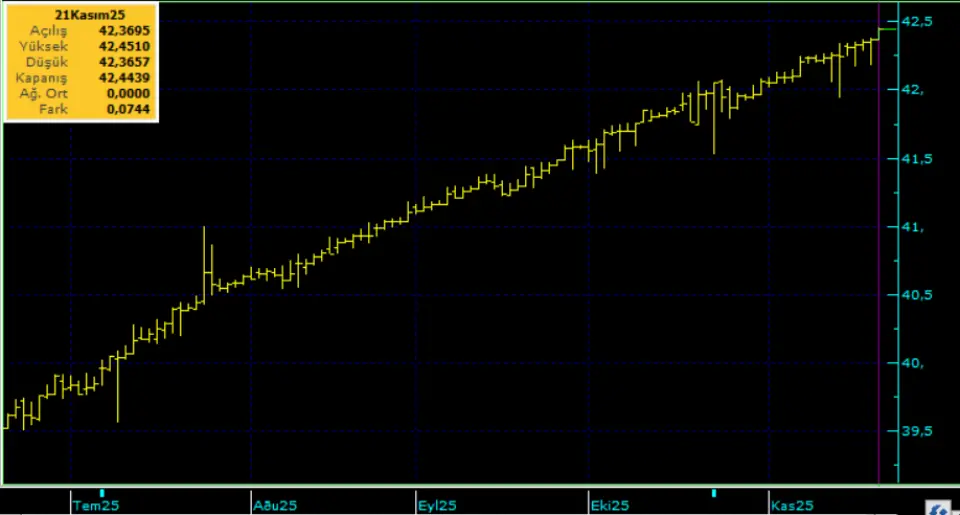 İç tarafta, TL gücünü korumaya devam ediyor. Aylık enflasyon artış hızının azalması programın gücünü artırır, TL mevcut güç kazanma halini korumayı sürdürür diye düşünüyoruz. Kasım ayı enflasyonuna dair tahminler yüzde 1,5-1,7 civarında oluşuyor. Bu TL için olumlu olarak yorumlanabilir. Kurda ılımlı yukarı eğilimi koruyor. Bu sabah 42,44 civarında işlem görüyor. Aşağıda 42,00 ve 41,70; yukarıda 42,50 ve 42,70 öne çıkan teknik seviyeler.