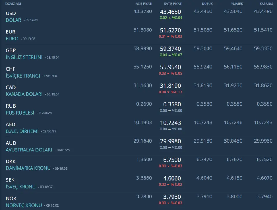 Kurda ılımlı yukarı eğilimi koruyor. Bu sabah 43,39 civarında işlem görüyor. Aşağıda 43,00 ve 43,20; yukarıda 43,50 ve 43,70 öne çıkan teknik seviyeler.