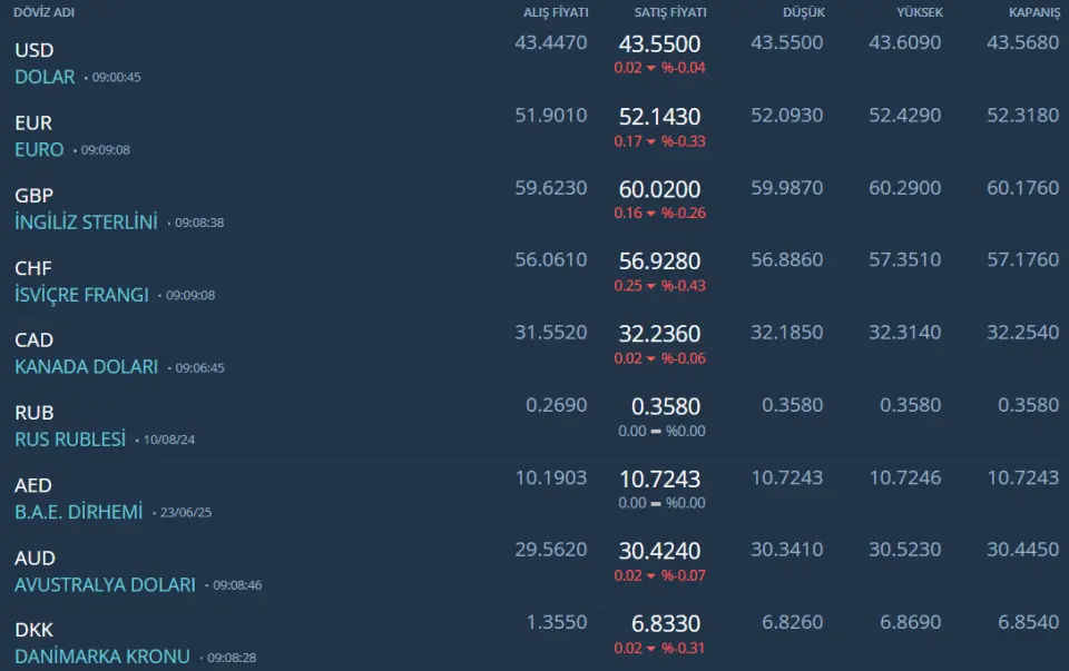 Kurda ılımlı yukarı eğilimi koruyor. Bu sabah 43,41 civarında işlem görüyor. Aşağıda 43,00 ve 43,20; yukarıda 43,50 ve 43,70 öne çıkan teknik seviyeler.