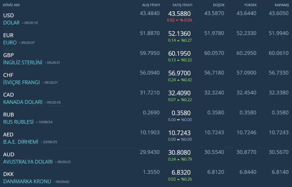 Kurda ılımlı yukarı eğilimi koruyor. Bu sabah 43,42 civarında işlem görüyor. Aşağıda 43,00 ve 43,20; yukarıda 43,50 ve 43,70 öne çıkan teknik seviyeler.