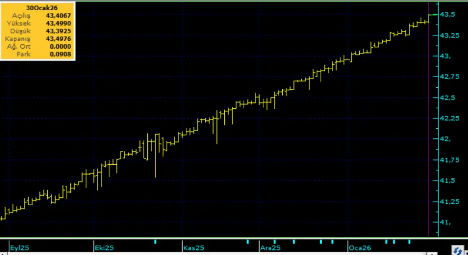 Kurda ılımlı yukarı eğilimi koruyor. Bu sabah 43,46 civarında işlem görüyor. Aşağıda 43,00 ve 43,20; yukarıda 43,50 ve 43,70 öne çıkan teknik seviyeler.