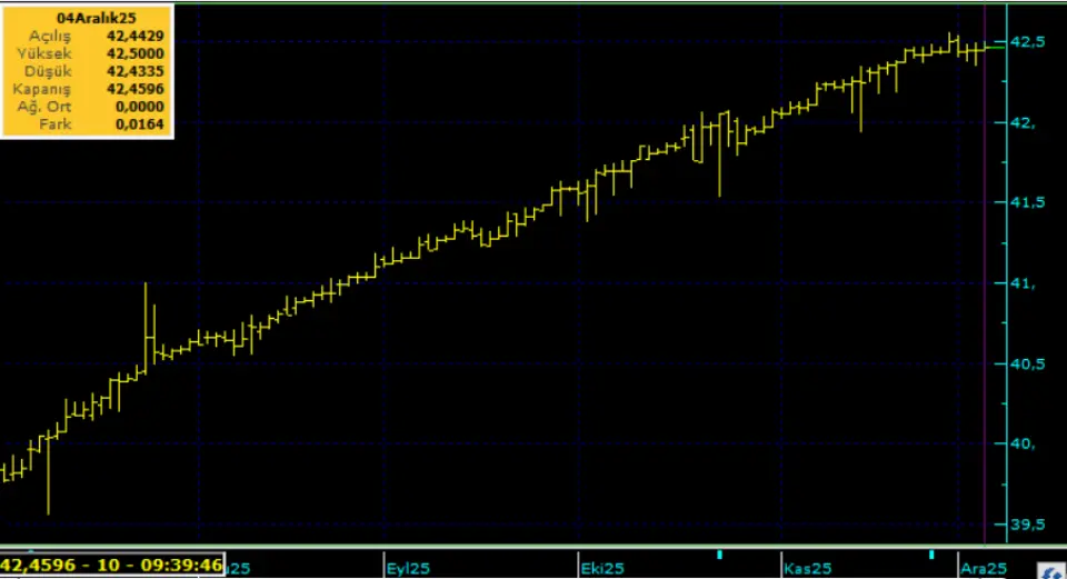 USDTRY kurunda çarşamba günü 42,34-42,49 bandında hareket edildi. Dolar/TL’de yukarı yönlü hareketlerde ilk etapta yükselen kanalın alt bant direnci olan 42,94 seviyesi izlenebilir. Direncin kırılması durumunda yükselen kanalın direnci olan 43,43 seviyesi takip edilebilir. Aşağı yönlü hareketlerde ilk etapta uzun vadeli yükselen kanalın üst bant desteği olan 42.39 seviyesi takip edilebilir. Desteğin kırılması durumunda uzun vadeli yükselen kanalın alt bandı desteği olan 41,83 seviyesi izlenebilir. Hareketin devamı durumunda ise yatay destek olan 41,53 seviyesi izlenebilir.