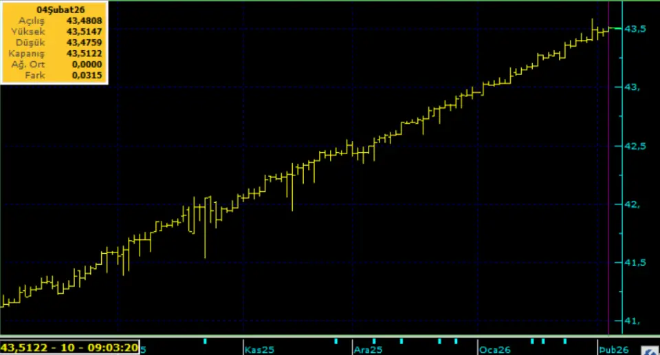 İç tarafta, 2026 yılının ilk enflasyon rakamları açıklandı. TÜİK verilerine göre enflasyon ocak ayında yüzde 4,84, yıllık olarak ise yüzde 30,65 olarak gerçekleşti. Kurda ılımlı yukarı eğilimi koruyor. Bu sabah 43,50 civarında işlem görüyor. Aşağıda 43,00 ve 43,20; yukarıda 43,70 ve 44,00 öne çıkan teknik seviyeler.