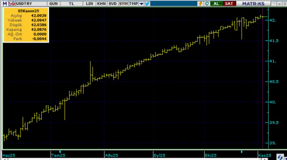 İç tarafta, Türkiye İstatistik Kurumu Ekim ayına ilişkin enflasyon rakamlarını dün açıkladı. Ekim ayında enflasyon 2,55 oldu. Yıllık bazda ise enflasyon 32,87'ye geriledi. Yurt İçi Üretici Fiyat Endeksi (Yİ-ÜFE) yüzde 1,63 artış gösterdi. Piyasa beklentilerinin altında gelen Ekim enflasyonu sonrasında, ana resimde dezenflasyon süreci tekrar düşüş trendine dönmüş oldu. Eylül verisi yıllık oranı yukarı çekmiş ve enflasyonun son 1,5 yıllık kesintisiz aşağı inişine ara verdirmişti, ekim ayı verisi ile bu ara 1 ay olarak kaldı. Kurda ılımlı yukarı eğilimi koruyor. Bu sabah 42,07 civarında işlem görüyor. Aşağıda 41,70 ve 41,50; yukarıda 42,30 ve 42,50 öne çıkan teknik seviyeler.