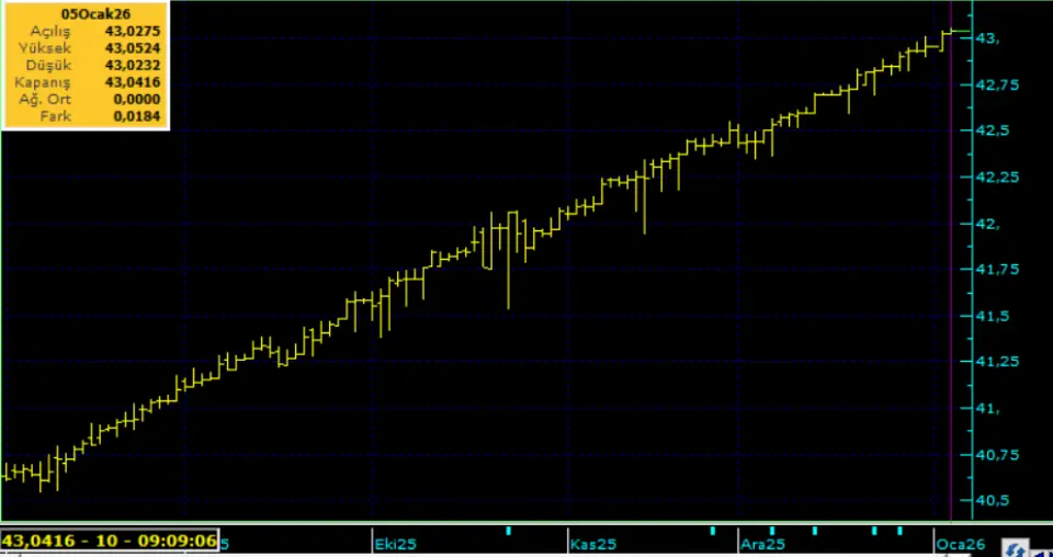 İç tarafta, geçtiğimiz yıl dezenflasyon hedefli sıkı duruş belli sonuçlar sağladı. Sıkı duruşun bu yıl da sürmesini ve beklenen sonuçlar alındıkça kademeli-kontrollü gevşemenin olacağını öngörüyoruz. Bu çerçevede TL program başladığından beri süren yaklaşımın bu yıl da TL’nin diğer dövizler karşısındaki seyrini belirleyeceği kanaatindeyiz (sınırlı değer kaybeden TL, dövize yönelmeye mani olacak para politikası). Bugün aralık ayı TÜFE verisi açıklanacak. Bloomberg’deki beklenti aylık artışın yüzde 1 olacağı yönünde. Böylece yıl kapanışı %31 seviyesinde oluşacak. Kurda ılımlı yukarı eğilimi koruyor. Bu sabah 43,02 civarında işlem görüyor. Aşağıda 42,70 ve 42,50; yukarıda 43,30 ve 43,50 öne çıkan teknik seviyeler.