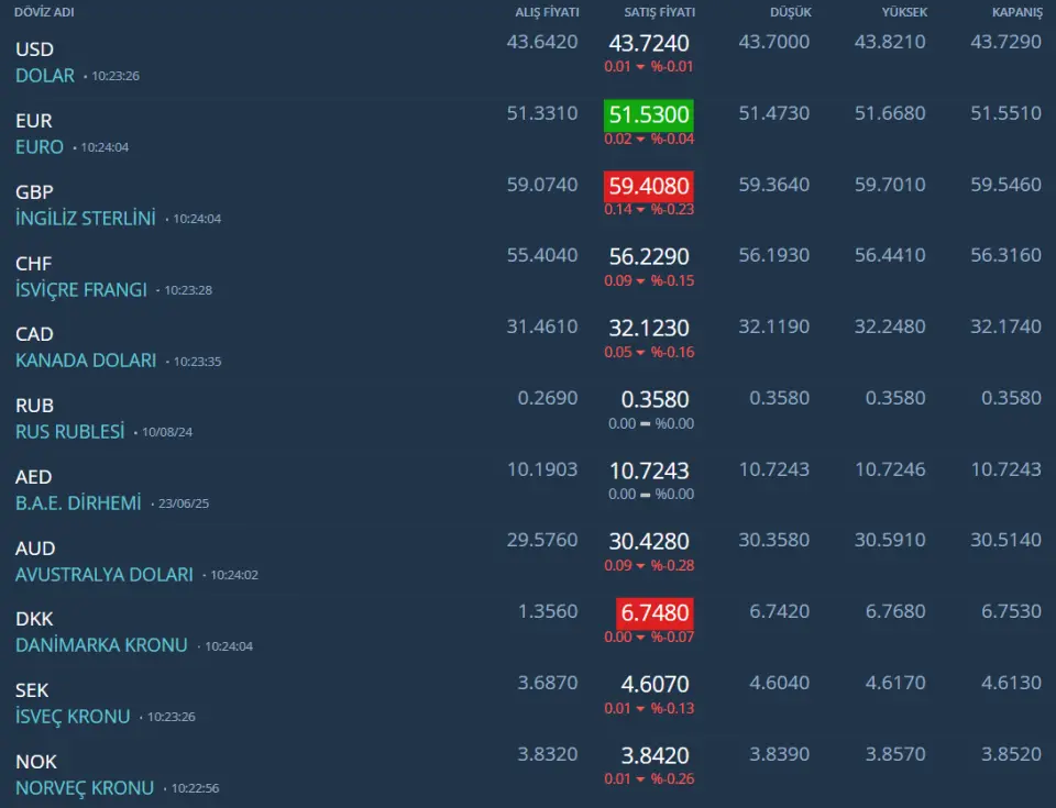 Kurda ılımlı yukarı eğilimi koruyor. Bu sabah 43,53 civarında işlem görüyor. Aşağıda 43,00 ve 43,20; yukarıda 43,70 ve 44,00 öne çıkan teknik seviyeler.