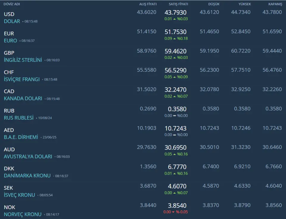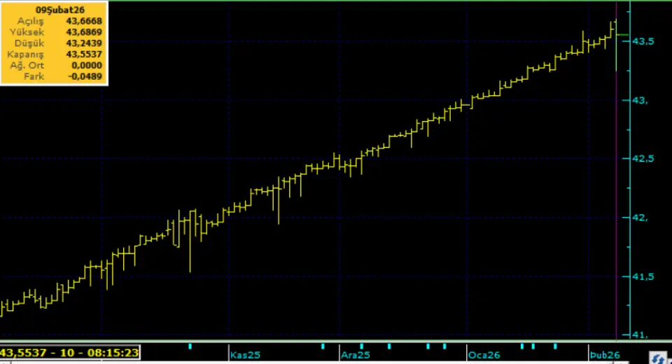Bu sabah 43,57 civarında işlem görüyor. Aşağıda 43,00 ve 43,20; yukarıda 43,70 ve 44,00 öne çıkan teknik seviyeler.
