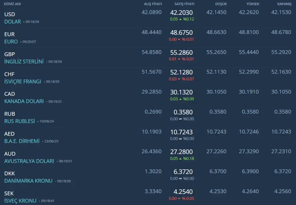 Kapalıçarşı döviz fiyatları: