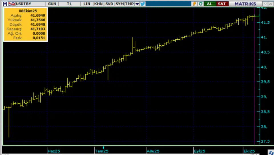 İç tarafta, enflasyonun ana eğiliminde aşağı yön oldukça yavaşlamış durumda. Bu durum TCMB Ekim ayında sınırlı faiz indirimine gideceği beklentisinin artmasına neden oluyor. Kurda ılımlı yukarı eğilimi koruyor. Bu sabah 41,71 civarında işlem görüyor. Aşağıda 41,00 ve 40,50; yukarıda 42,00 ve 42,50 öne çıkan teknik seviyeler.