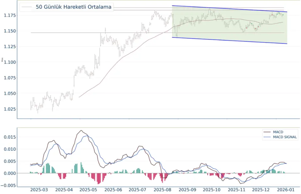 EUR/USD kapanışla birlikte %0.14 yükseliş gerçekleştirdi. Güne 1,175 seviyesinde başladı ve gün içinde en yüksek 1,177, en düşük 1,175 seviyesinden işlem gördü. Kapanışı ise 1,176 seviyesinde tamamladı. Kısa vadede negatif görüntü hakimdir. MACD sat pozisyonunda, pozitif bölgede hareket ediyor. 1,199 seviyesinin geçilmesi halinde yükseliş eğilimli hareketler izlenebilirken yeni direnç olarak 1,2 karşımıza çıkacaktır. 1,166 ise önemli destek konumundadır. Bu desteğin altına gelinmesi halinde 1,168 yeni destek olarak takip edilebilir.