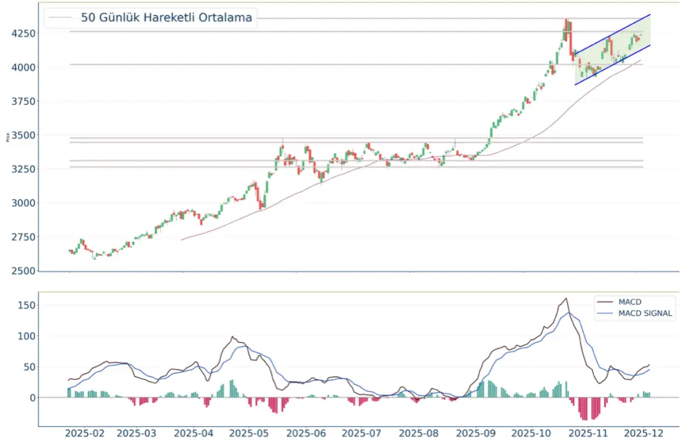 Ons Altın, günlük periyotta %0.89 arttı. Haftalık bakıldığında %1.71 yukarıda ve aylık bakıldığında ise %6.44 yukarıda seyrederken güncel olarak 4.236 seviyesinden işlem görmekte. Teknik göstergelere bakıldığında MACD al pozisyonunda, pozitif bölgede hareket ediyor. Ayrıca RSI değerine göre aşırı alım veya satım bölgesinde olmadığı gözleniyor. İşlem yaparken 4.323 ve 4.344 dirençleri ve 4.203 ve 4.142 destekleri izlenebilir.