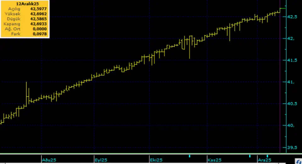 İç tarafta, Türkiye Cumhuriyet Merkez Bankası (TCMB) yılın son toplantısında politika faizini 150 baz puan indirerek yüzde 38 seviyesine çekti. Karar genel piyasa beklentilerine uyumlu oldu. TCMB dezenflasyonist sürecin yavaşladığı mesajını verirken, enflasyon ana eğilimindeki iyileşmeyi ve talep koşullarının dezenflasyon sürecine verdiği desteğinin vurguladığı görüldü. Bundan sonraki kararlarda indirim boyutunun enflasyon odaklı, toplantı bazlı ve ihtiyatlı gözden geçirileceği vurgulandı. Kurda ılımlı yukarı eğilimi koruyor. Bu sabah 42,68 civarında işlem görüyor. Aşağıda 42,30 ve 42,00; yukarıda 42,70 ve 43,00 öne çıkan teknik seviyeler.