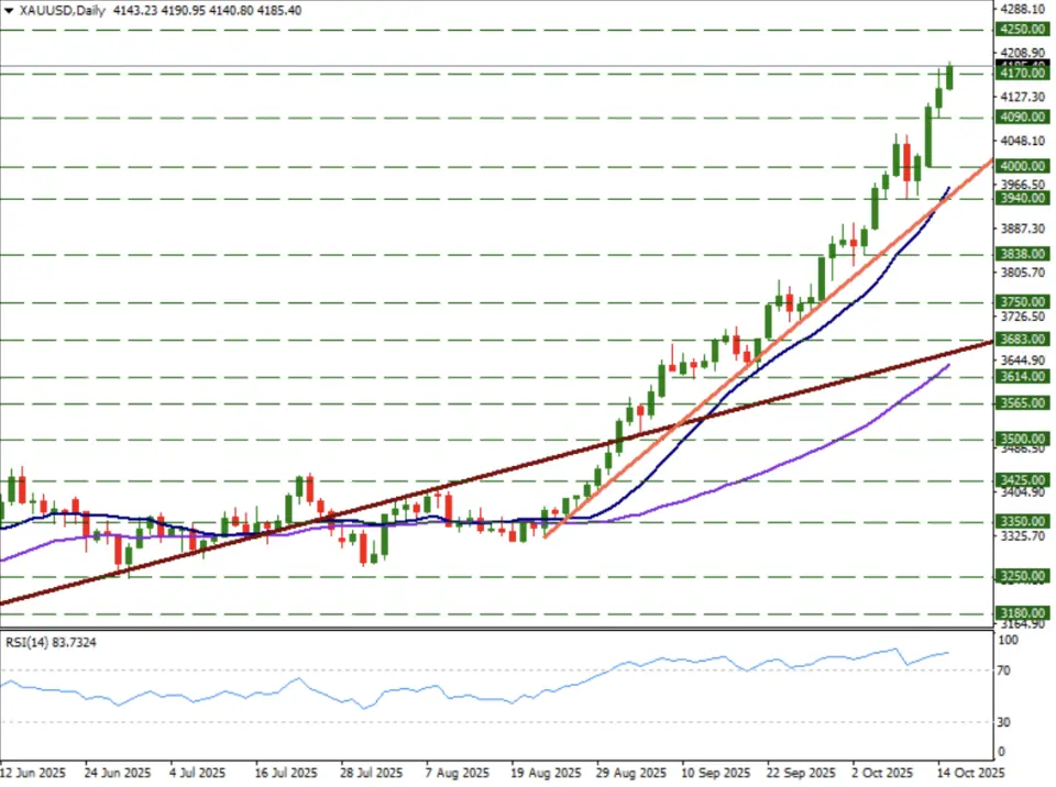 Ons altın güçlü yükseliş ivmesini devam ettirirken 4170 direncini aşarak 4190 bölgesinde rekor tazeledi. Küresel ticaret gerilimlerinin ve FED’in faiz indirmesi beklentileri ons altının güvenli liman olarak talebini artırıyor. Yukarı yönlü ivmenin devamında 4250 bölgesinde kar satışları görülebilir. 4170 bölgesi aşağısında 4090 bölgesi destek olarak test edilebilir.
