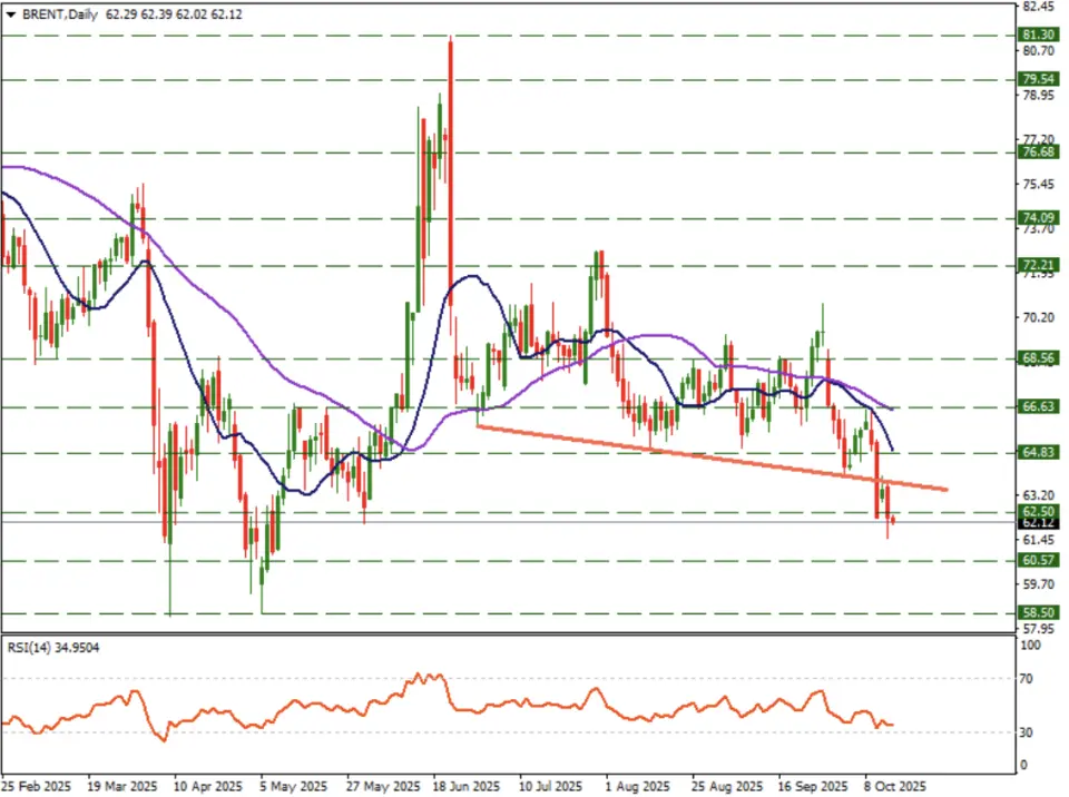 Brent petrol arz-talep dengesindeki uyumsuzluklar sonucunda geçtiğimiz gün 61.51 seviyesine kadar gerileyerek en son Mayıs ayında görülen bölgeleri gördü. Günü 62.28 seviyesinde kapatan brent petrol, yeni işlem gününün Asya seansını 62.12 bölgesinde hafif satıcılı geçirdi. Aşağı yönlü baskıların devamında 60.57 bölgesi destek olarak gündeme gelebilir.