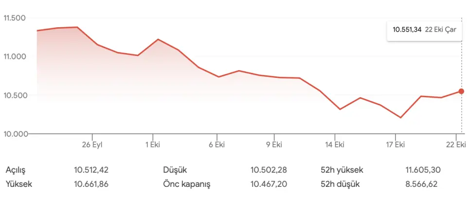 Güne Borsa İstanbul'da BIST 100 endeksi, yüzde 0,32 artış ile 10.584,59 puandan başlangıç yaptı. Önceki gün alış ağırlıklı bir seyrin hakim olduğu Borsa İstanbul'da BIST 100 endeksi, günü yüzde 0,80 değer kazanımı ile 10.551,34 puandan noktalamıştı. Öncek kapanışa oranla açılışta BIST 100 endeksi, 33,25 puan ve yüzde 0,32 yükseliş ile 10.584,59 puana ulaştı. Holding endeksi yüzde 0,50 artarken, bankacılık endeksi ise yüzde 0,19 yükseldi.