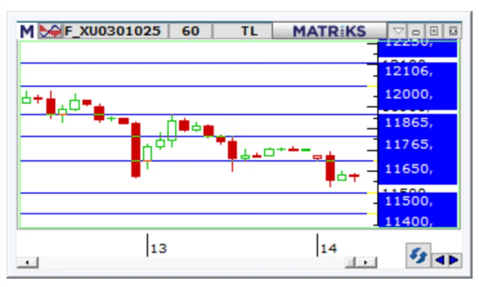 Güne yataya yakın bir açılışla başlayan ekim vadeli endeks sözleşmesinde gün içerisinde satıcılı bir fiyatlama takip ediliyor. Günün ilk yarısında 11.527,00 – 11.694,00 seviyeleri arasında hareket eden sözleşme, 12:50 itibariyle %0,90 oranında bir düşüşle 11.575 seviyelerinden işlem görüyor. Sözleşmede zayıf görünümün etkisini sürdürmesi durumunda 11.550 – 11.500 aralığı kısa vadeli ilk destek bölgesidir. 11.500 desteği kırılacak ve altında saatlik kapanışlar yaşanacak olursa 11.465- 11.400 ve 11.340 seviyelerine doğru geri çekilmeler gündeme gelebilir. Sözleşmede tepki alımlarının gözlenmesi halinde ise 11.600 seviyesi ilk direnç noktası olup, devamında 11.650 – 11.700 aralığı direnç bölgesi olarak takip edilecektir. 11.700 üzerinde kalıcılık sağlanabilirse 11.730 – 11.765 ve 11.800 seviyeleri direnç konumunda bulunmaktadır.