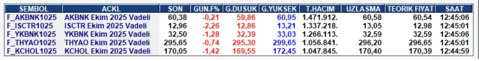 Haftanın ilk işlem günü Cuma günü yaşanan sert yükseliş sonrası kar satışlarının etkili olduğu takip edilirken, Ekim vadeli AKBNK sözleşmesi gün ortasına kadar 59,86 TL – 60,95 TL seviyeleri arasında fiyatlanmaktadır. Sektörde paralel yatay zayıf fiyatlama yaşanırken, sözleşmede 61,00 TL - 61,42 TL ve 200 günlük ortalamanın bulunduğu 61,98 TL seviyeleri gündeme gelecektir.