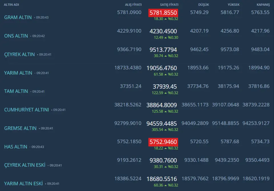 Gram Çeyrek Altın Kapalıçarşı Fiyatları 1 Aralık