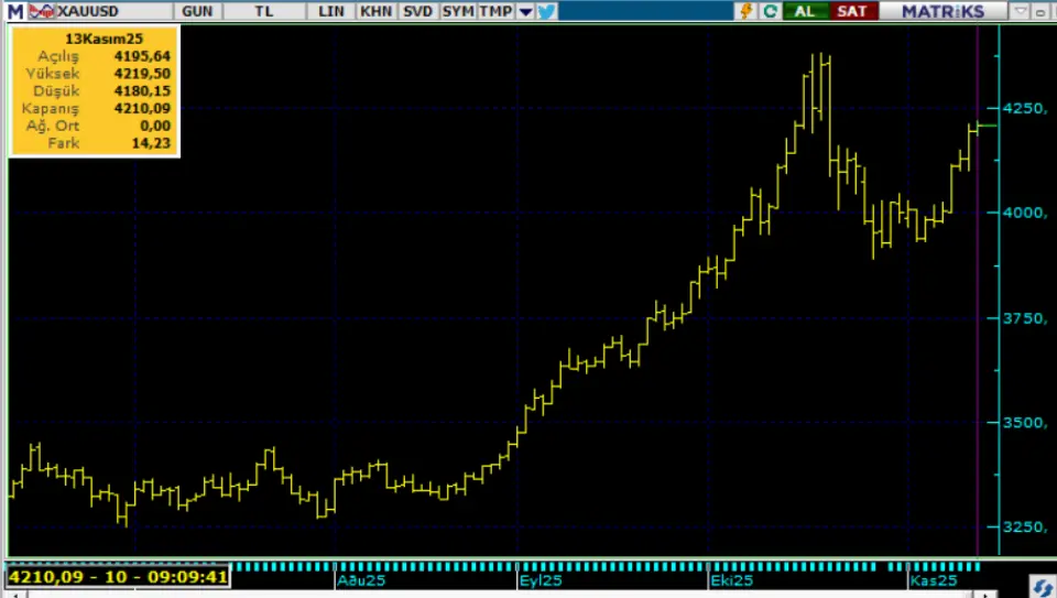 Kısa vadede altın 4.000-4.200 Usd bant aralığında işlem görebilir . Altın fiyatlarında teknik olarak psikolojik destek noktası 4.000 Usd destek noktası olarak takip edilebilir. 4.000 Usd altında aşağı yönlü denge arayışı devam edebilir. Bu sabah 4.205 Usd seviyesindeki ons altında 4.240 ve 4.330 Usd seviyeleri gün içi direnç, 4.160 ve 4,110 Usd seviyeleri gün içi destek seviyeleri olarak izlenebilir. Bugün yatay sınırlı pozitif seyir izleyebilir.
