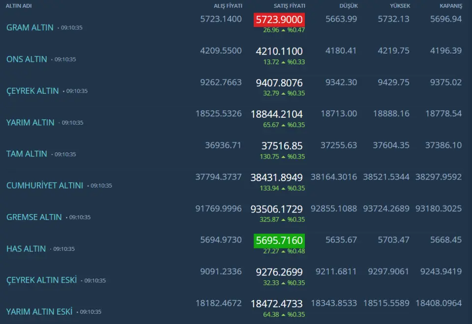 Gram Çeyrek Altın Kapalıçarşı Fiyatları 13 Kasım Perşembe