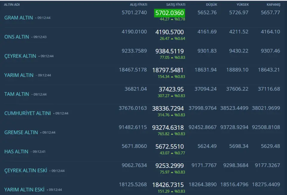 Gram Çeyrek Altın Kapalıçarşı Fiyatları 14 Kasım Cuma