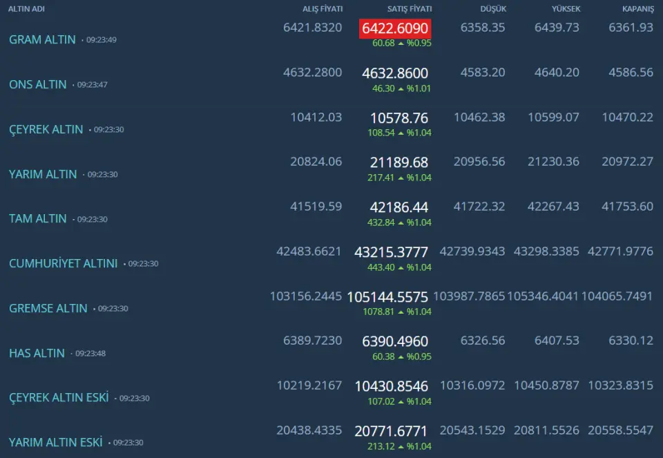 Kapalıçarşı Altın fiyatları