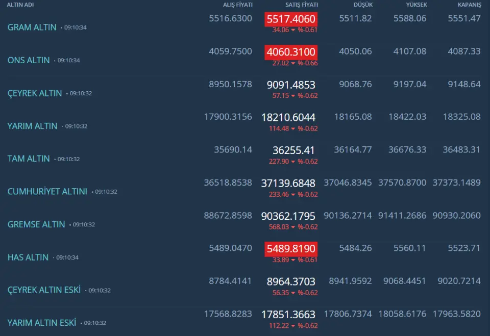 Gram Çeyrek Altın Kapalıçarşı Fiyatları 17 Kasım Pazartesi