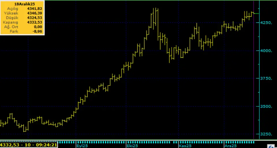Teknik tarafta 4.250 Usd üstünde kalıcılığın sağlanması 4.250- 4.380 bant aralığında fiyatlamalar devam edebilir. Yeni bir yükseliş hareketi için 4.380 Usd seviyesinin geçilmesi gerektiğini düşünüyoruz. Bu sabah 4.335 Usd seviyesindeki ons altında 4.350 ve 4.380 Usd seviyeleri gün içi direnç, 4.200 ve 4,250 Usd seviyeleri gün içi destek seviyeleri olarak izlenebilir. Bugün sınırlı negatif seyir izleyebilir.