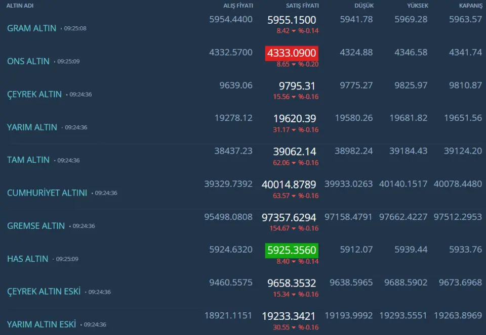 Gram Çeyrek Altın Kapalıçarşı Fiyatları 18 Aralık Perşembe