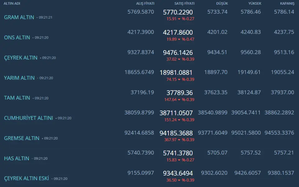 Gram Çeyrek Altın Kapalıçarşı Fiyatları 2 Aralık