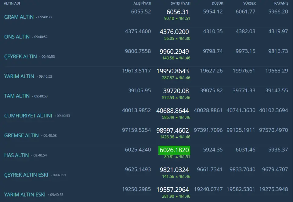 Gram Çeyrek Altın Kapalıçarşı Fiyatları 2 Ocak