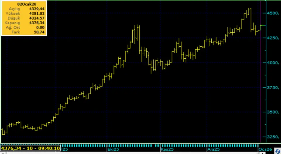 Ons Altın günlük grafikte 4550 bölgesinden gelen sert geri çekilme kısa vadede ivmeyi belirgin biçimde soğutmuş görünüyor. Fiyatın şu aşamada 4320 civarındaki 20 günlük EMA çevresinde tutunma arayışı öne çıkarken, bu bölgenin korunması geri çekilmeyi “trend içi düzeltme” olarak tutar. 4320 altında ise 4261 (23.6 fib) ilk kritik denge alanı olarak izlenebilir. Yukarıda ise 4550 seviyesi belirgin bir direnç bu bölge üzerinde özellikle haftalık kapanış gelmeden “kalıcı kırılım” demek zor.