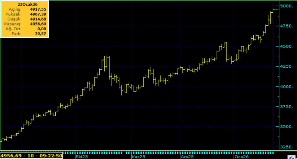 Teknik tarafta atın fiyatları için 4.750 Usd seviyesi yakın destek noktası olarak takip edilebilir. Altın da 5,000 Usd ,Gümüş ise 93 Usd direnci sonrası 100-105Usd’yi yeni psikolojik direnç yapabilir. Bu sabah 4.945 Usd seviyesindeki ons altında 4.950 ve 5,000 Usd seviyeleri gün içi direnç, 4.800 ve 4,890 Usd seviyeleri gün içi destek seviyeleri olarak izlenebilir. Bugün sınırlı pozitif seyir izleyebilir.