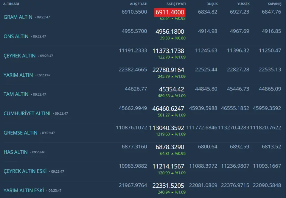 Gram Çeyrek Altın Kapalıçarşı Fiyatları 23 Ocak