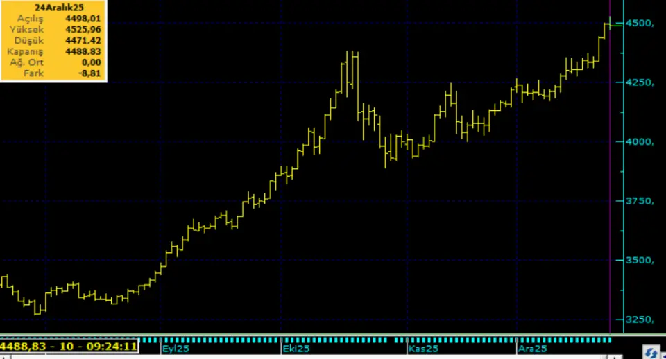 Teknik tarafta tüm zamanların en yüksek seviyesini test eden altında 4.380 Usd üstünde kalınması 5 bin Usd seviyesini hedef haline getirebilir. 4.380 Usd yakın destek noktası olarak takip edilebilir. Bu sabah 4.490 Usd seviyesindeki ons altında 4.500 ve 4.575 Usd seviyeleri gün içi direnç, 4.400 ve 4,450 Usd seviyeleri gün içi destek seviyeleri olarak izlenebilir. Bugün sınırlı pozitif seyir izleyebilir.