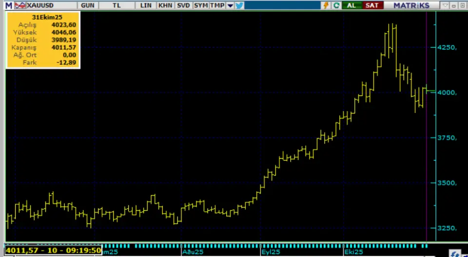 Altın fiyatlarında teknik olarak psikolojik destek noktası 4.000 Usd destek noktası olarak takip edilebilir. 4.000 Usd altında aşağı yönlü denge arayışı devam edebilir. Bu sabah 3,995 Usd seviyesindeki ons altında 4.000 ve 4.020 Usd seviyeleri gün içi direnç, 3.880 ve 3,800 Usd seviyeleri gün içi destek seviyeleri olarak izlenebilir. Bugün sınırlı negatif seyir izleyebilir.